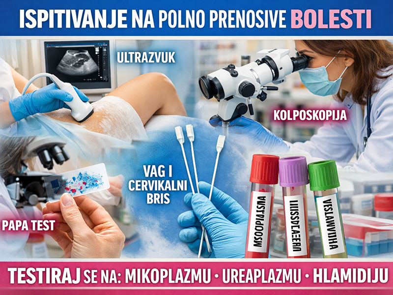 1-Ginekološki pregled, 2-UZ, 3-Kolposkopija, 4-PAPa test, 5-vag i cervikalni bris, 6- Ispitivanje na POLNO PRENOSIVE Bolesti Mycoplasmu, Ureaplasmu i Chlamydia