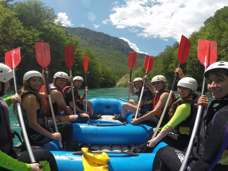 3. DAN: Nakon što gosti kampa završe doručak (oko 8h) slijedi preuzimanje opreme za rafting (sigurnosni prsluk, kaciga, neoprensko odelo i obuća, veslo). Već oko 10h krećemo našim terenskim vozilima do Brštanovice koja je polazna tačka za rafting. Vodiči prave raspored sedenja na čamcu i drže kratak kurs/brif o pravilnom sedenju, ponašanju u čamcu i tehnikama veslanja divljom i brzom rekom. Nakon toga sledi rafting najuzbudljivijim delom reke Tare u trajanju od 3 do 4 sata sa pauzama za fotografisanje, plivanje i osveženje. Nakon Tare sledi još 5km raftinga rekom Drinom (kod Šćepan polja, reke Tara i Piva se sastaju i nastavljaju kao Drina) sve do kampa Highlander gde je oko 15h organizovan ručak. Ukoliko želite ručak potrebno je da ga poručite pre odlaska na rafting. Nakon ukusnog tradicionalnog ručka uz sumiranje utisaka i planove za nove avanture aranžman se završava. Prema želji i u dogovoru sa gostima moguće je produži boravak i iskusiti neku novu avanturu – pecanje, jahanje konja, brdski biciklizam, izlete do Sarajeva, Višegrada, Trebinja ili Dolinu heroja.